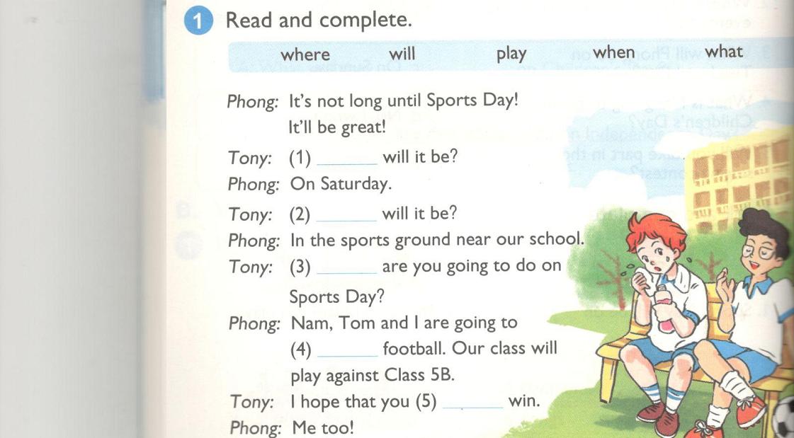 Phong: Phong, Nam và tớ sẽ chơi bóng đá. Lớp tớ sẽ đấu với lớp 5B.