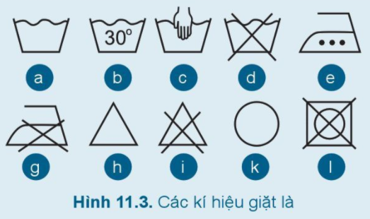 Ý nghĩa của các kí hiệu có trên nhãn trang phục trong Hình 11.3 là: