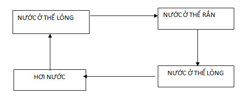 Vẽ lại sơ đồ sau vào vở rồi điền các từ : bay hơi, đông đặc, ngưng tụ, nóng chảy vào vị trí của mỗi mũi tên cho thích hợp