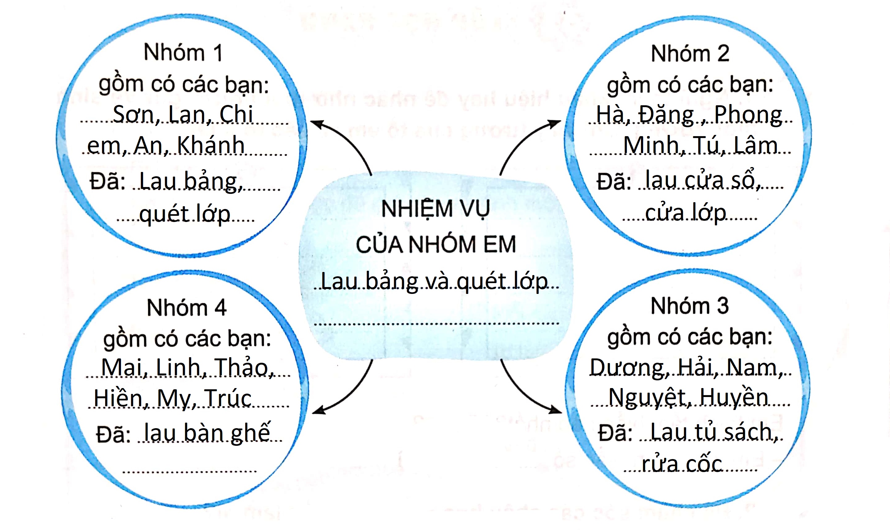 Em làm: Cùng các bạn trong nhóm (tổ) nhận một việc phù hợp và thực hiện trong giờ sinh hoạt.