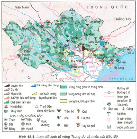 Xác định trên hình 18.1 các cửa khẩu quan trọng thuộc biên giới Việt – Trung: Móng Cái, Hữu Nghị, Lào Cai.