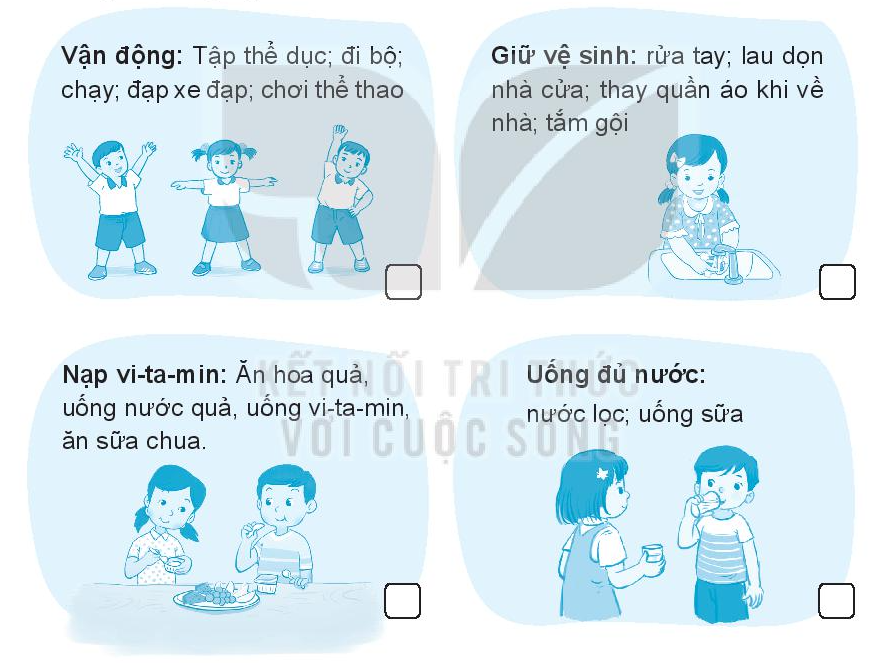 Ghi lại những việc em đã làm để bảo vệ sức khỏe của bản thân ( ăn nhiều rau xanh, hoa quả, uống đủ nước, tập thể dục…)
