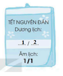 – Cùng bố mẹ xem lịch để biết ngày tết nguyên đán năm nay sẽ rơi vào ngày dương lịch nào – Em hãy tự làm một tờ lịch nhỏ ghi ngày tết Nguyên đán và ngày dương lịch tương ứng rồi dán vào vở
